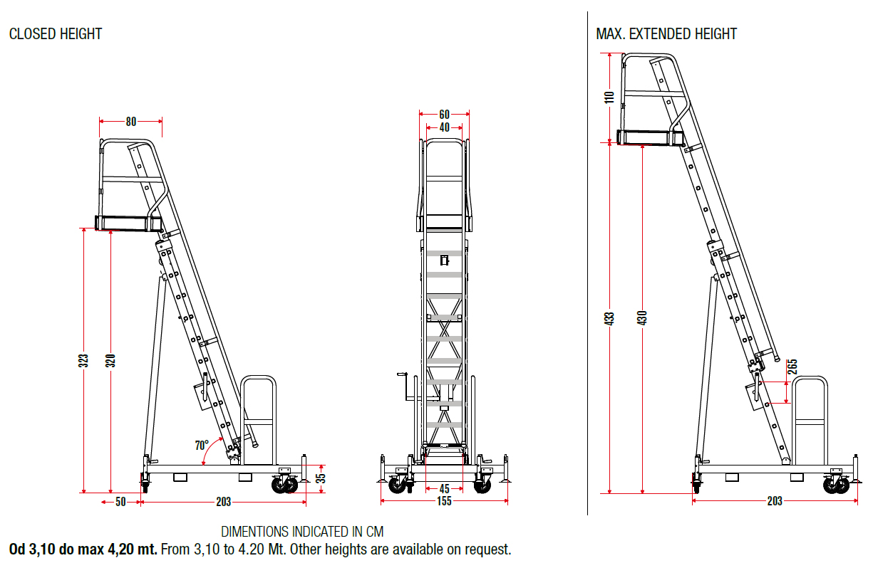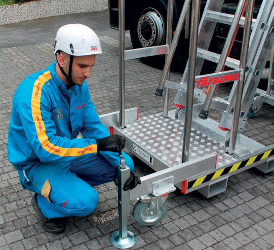 Designed to guarantee maximum safety during maintenance operations at height on large vehicles with variable heights.