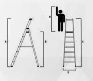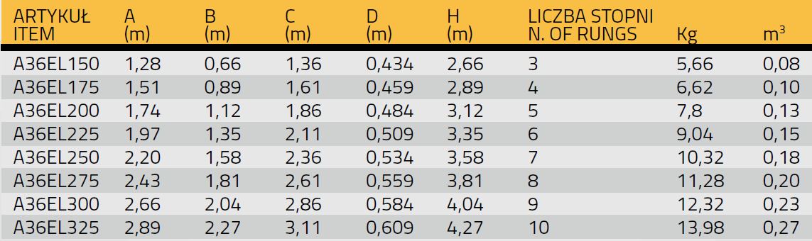 Folding ladder with industrial platform made of fibreglass rails and aluminium steps.