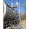 Allows safe operation at the tanker hatch. Vertical entry allows for efficient transport and space saving and take work standards into consideration. Thanks to the use of adjusting screws it is possible to level the platform. In the floor of the platform there are panels allowing access to the manhole, and vertical regulation allows for adjustment to different types of tanks (regulation – 1.5 m in steps every 14cm). The floor of the platform is made of non-slip corrugated sheet metal, optionally it can be made of steel grate, plastic (GRP) or perforated profile of any shape of perforation.