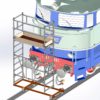 The platform can be moved along a rail with a precise and dirt-resistant crank conveyor system. The stairs move together with the platform.