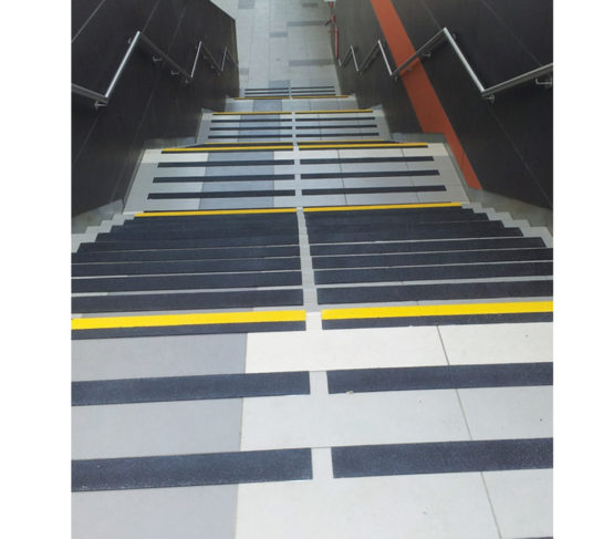 The anti-slip surface consists of refined aluminium oxide grit-coating (corundum) with a durability comparable to that of industrial-grade diamond. The size can be adjusted to the usage conditions. The anti-slip grit-coating is applied to the surface produced using the GRP technology. It is a special mixture of polyester resin reinforced with glass fibre.