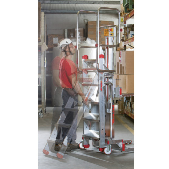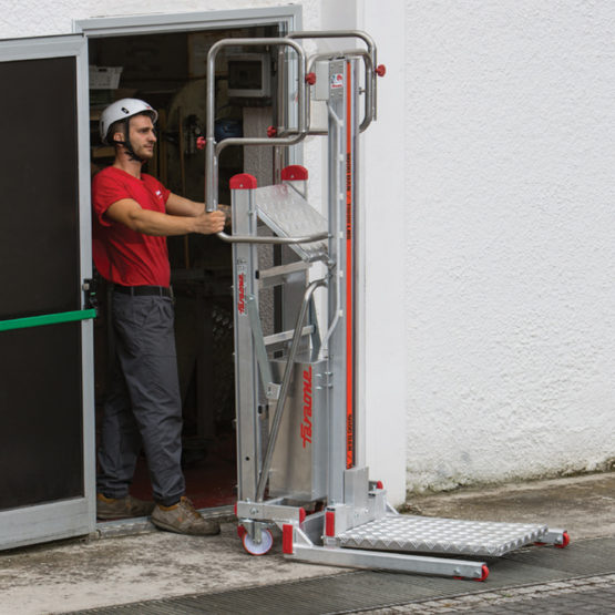 - electrically adjustable loading system with adjustable width forks with a total capacity of 150kg