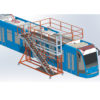 enables you to work comfortably and safely on the roof of vehicles. It is also possible to use the lower platform of the product, which enables work also on the lower parts of the vehicle without the need to move it. The combination of steel base and aluminium frame makes the product extremely stable and durable at low weight. Special wheels with roller bearings for easy transport. The wheels can be equipped with 2 or 3 rollers to prevent “falling into and wedging into” the gap between the rail and the floor. The gentle angle of inclination of the stairs allows for comfortable ascent and descent – also with the back to the stairs if the inclination of the stairs is below 45 degrees.