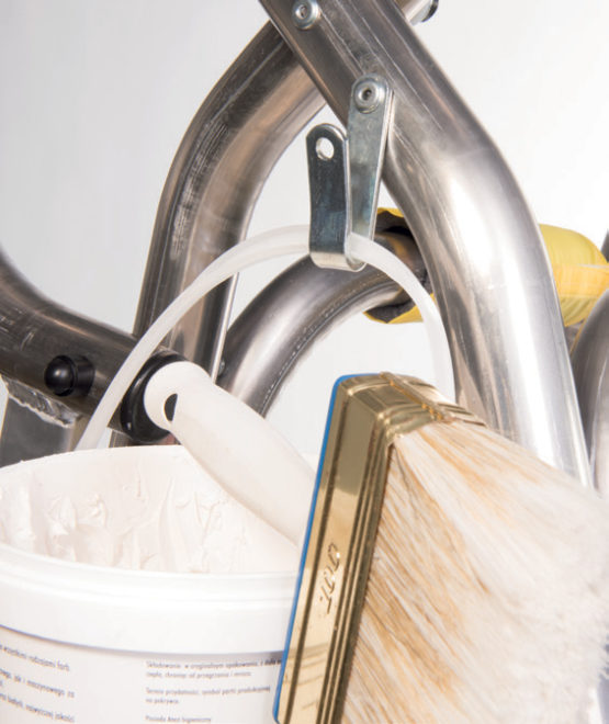 Product intended for plastering and painting work, made of aluminium. Allows you to move along the wall while working. The highest step is made of an orthophthalic grating (GRP), which