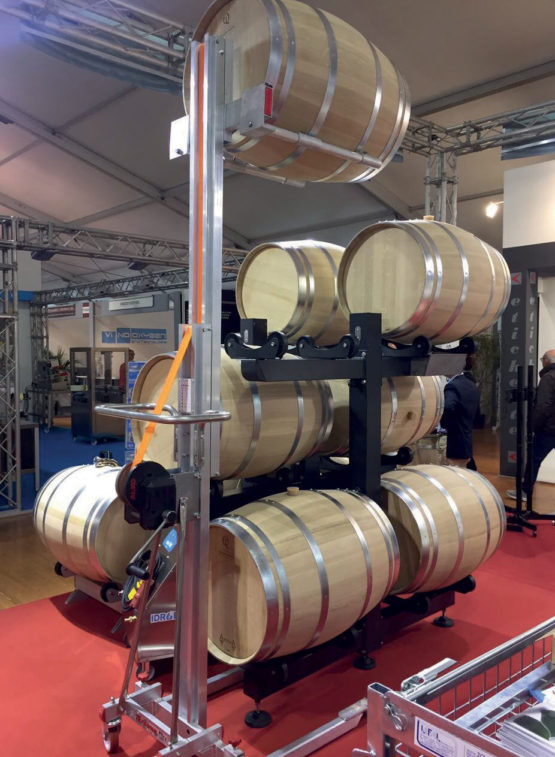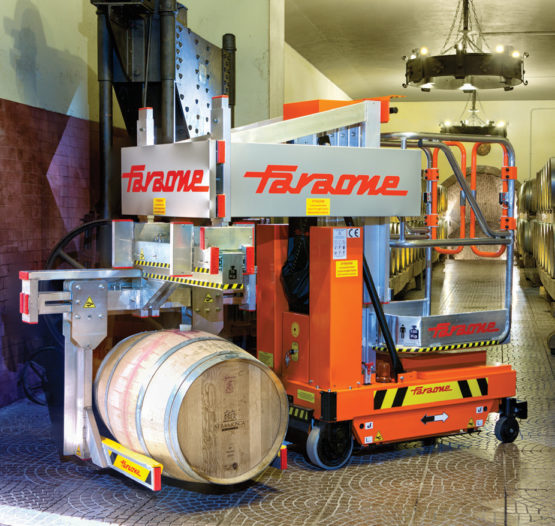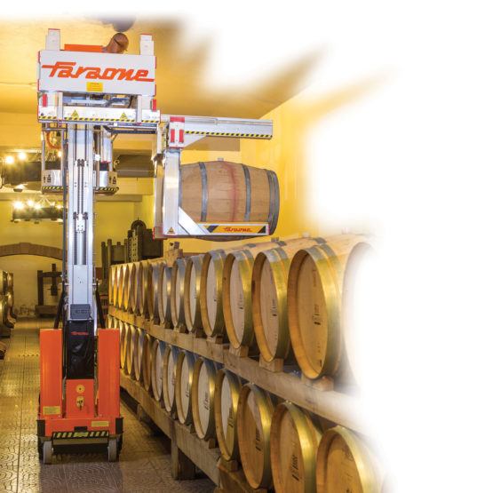 Special platforms for maintenance and processing in the cellar. Automatic pick-up and storage of barriques saving time, energy, and money.