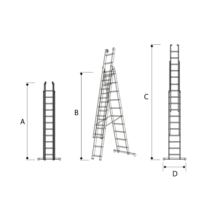 Multi-purpose ladder made of fibreglass rails and aluminium rungs. The ladder can be used in the following positions: leaning, folding.